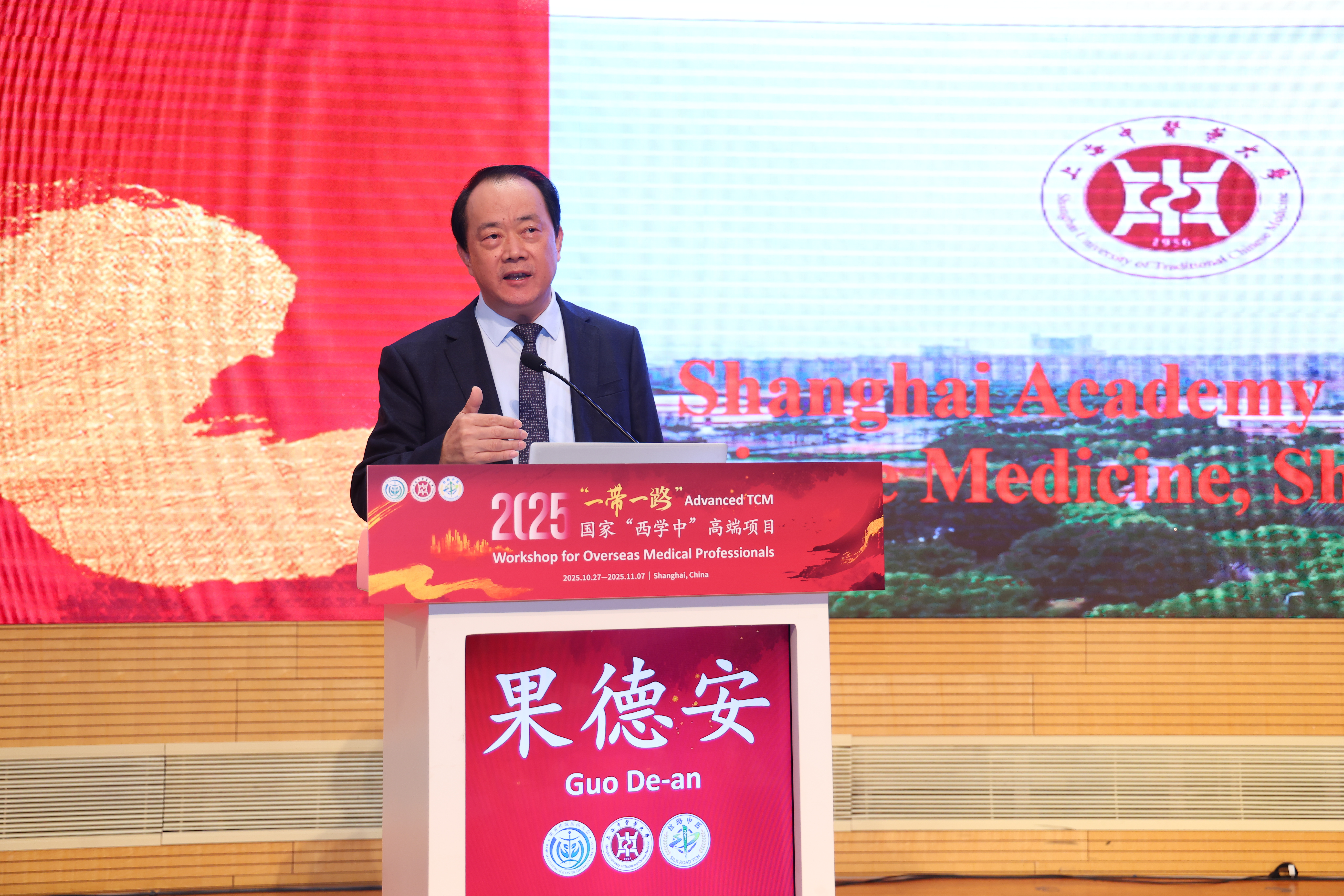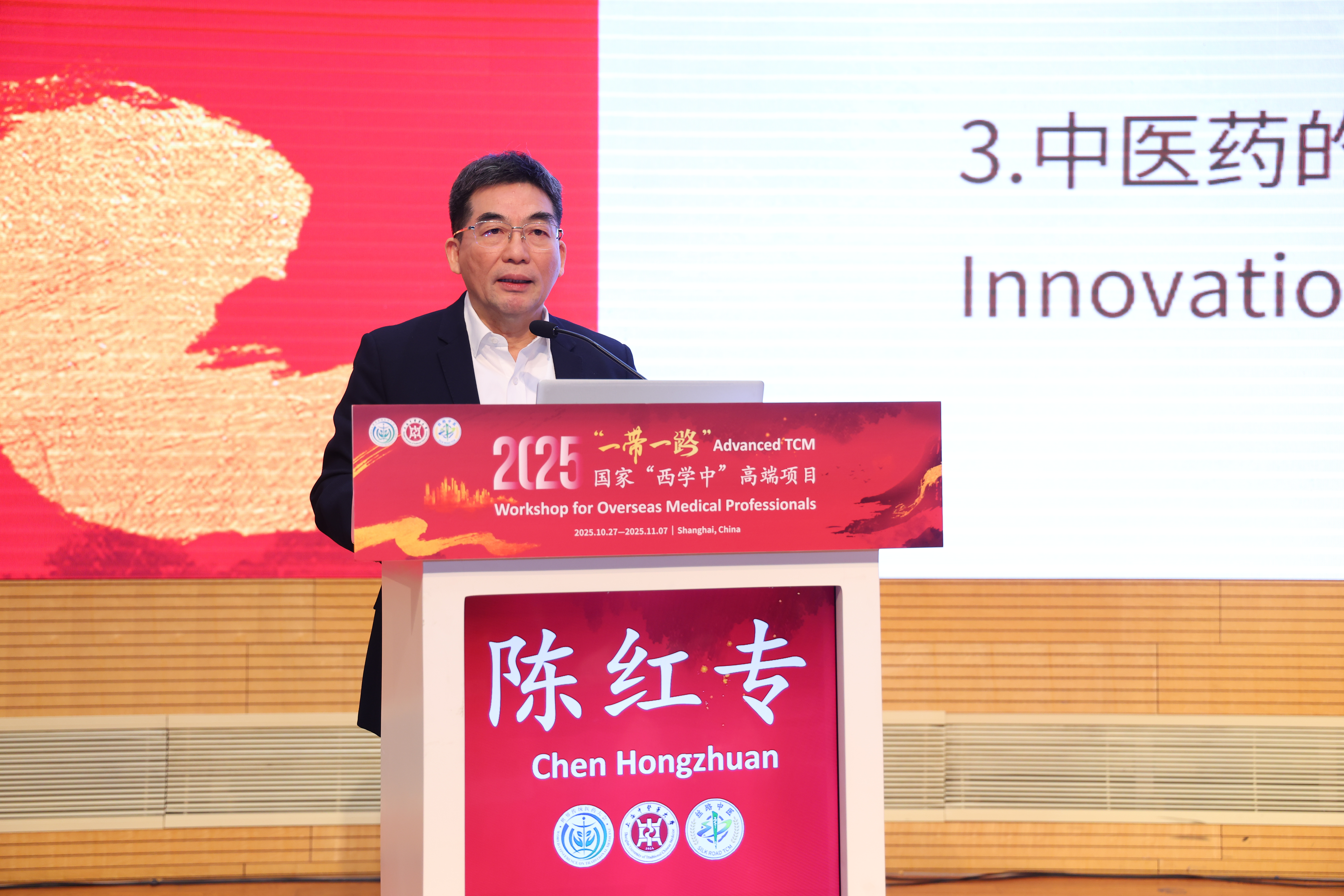 在主旨演讲环节,三位中医药领域专家带来高水平学术分享。上海中医药大学校长季光以“结合医学与未来医学模式”为题,指出“病证结合”构建了中西医对话的语言体系。上海市中医药国际标准化研究院院长果德安教授聚焦“中药质量控制策略与国际化发展”,介绍中药质量研究概况和中药标准制定国际化进程。上海中医药大学原副校长、上海市政府参事陈红专教授围绕“中医药与世界医学的发展”,阐述了中医药在应对全球健康挑战中的独特价值。三场演讲以多维视角,深化了学员们对中医药的系统理解。
