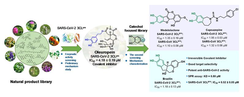 近日,我院田平课题组在生物大分子国际著名期刊《International Journal of Biological Macromolecules》上发表研究论文“Discovery of natural catechol derivatives as covalent SARS-CoV-2 3CLproinhibitors”(DOI:10.1016/j.ijbiomac.2024.130377)。通过源于天然产物的高通量活性筛选及机制研究,从而高效发现一系列活性好的儿茶酚类SARS-CoV-2 3CL蛋白酶共价抑制剂。