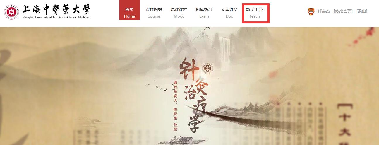 登录成功点击“教学中心”链接进入教师教学中心。如下图所示: