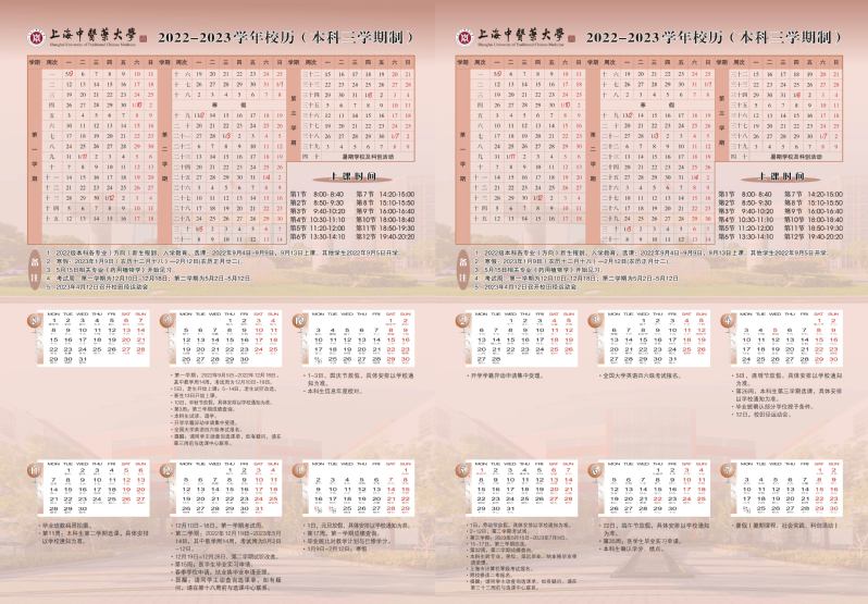 上海中医药大学2022-2023学年校历