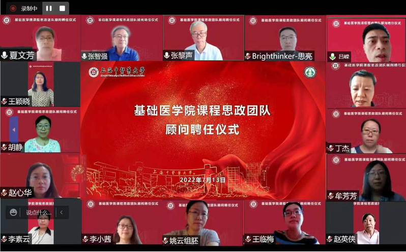 为落实立德树人根本任务,提高专业教师育德能力与育德水平,近期基础医学院组建课程思政团队。通过团队建设,培养一支专业精,会讲道理的师资队伍,建设一批课程思政示范性课程。7月13日上午,学院举行课程思政团队顾问聘任仪式,学院三十多位老师参会。会上,学院党委书记夏文芳宣读了课程思政团队 “天团” 顾问 ,他们分别是:我校原党委书记,上海市教育委员会思想政治教育特聘专家张智强教授;我校马克思主义学院党总支书记陶思亮教授;全国优秀教师、上海市教书育人楷模张黎声教授。