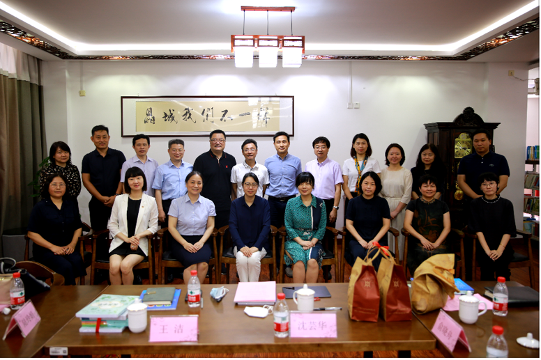 而后,到附属闵行晶城中学参观校园并进行了座谈,三所附属学校的校长进行了交流发言。蔷薇小学陈校长以“传承精华,守正创新”为主题,汇报了2017年至2022年期间,蔷薇小学的中医药文化特色办学历年执行情况,从“营造中医药文化空间,发挥空间育人功效”、“研发中医药特色课程,落实文化启蒙初心”、“打造中医药师资力量,保障文化传承实施”三方面,总结蔷薇五年来的中医药文化特色办学经验;晶城中学孙强校长以“基于中医药特色建设的学校实践探索”为主题,从“做好中医药文化内涵的顶层设计”、“建设具有中医药特色的校园文化”、“建设具有中医哲学特点的行为文化”、“五育融合视野下的中医药特色课程建设”、“打造中医药文化的辐射引领圈”五个方面汇报了晶城中学五年来学校的中医药文化特色建设成果;附属浦江高级中学刘坤校长则从“中医药文化”特色课程实施、“中医药文化”特色学生社团、“走进实践园”课程、“中医药文化”学生课题研究(自主选修)、“走近中医药”课程(学习实践点、读本、微信平台)、校园大型主题文化活动与“中医药文化”结合以及“市、区创新大赛学生“中医药文化”课题研究获奖情况”七个方面,汇报了附属浦江高级中学2017年至今学校的中医药特色文化落实情况。