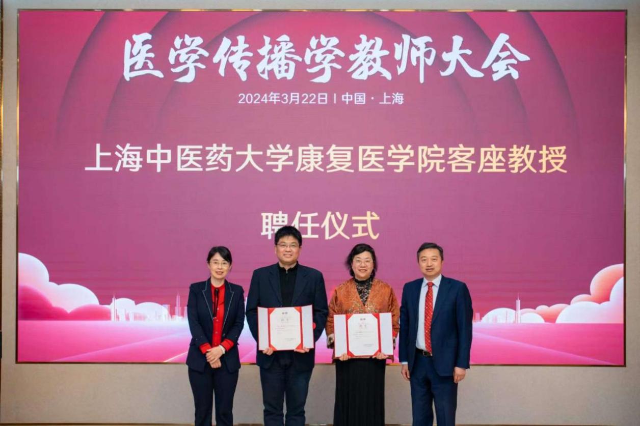 会上还举办了上海中医药大学康复医学院客座教授聘任仪式。上海中医药大学康复医学院党委书记向延卫、上海中医药大学康复医学院副院长刘晓丹,为“达医晓护”医学传播智库负责人王韬、医学传播学教研组组长周敏杰颁发客座教授聘书。