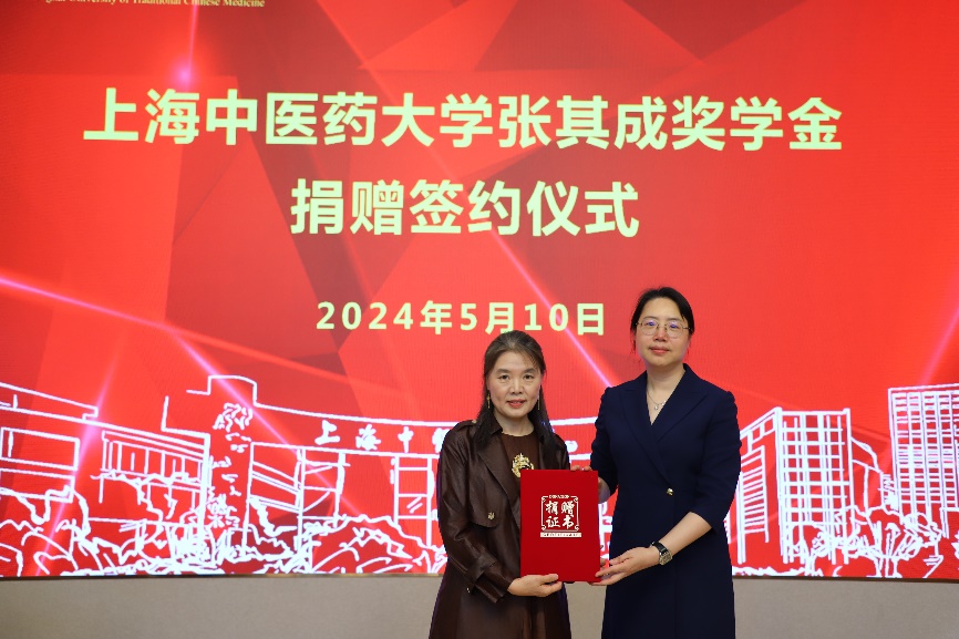 5月10日下午,张其成奖学金捐赠签约仪式在我校举行。北京张其成中医发展基金会理事长张其成、绿叶生命科学集团宣上医健康产业有限公司董事长王翠莲、总经理赵剑、我校副校长舒静,以及相关企业代表与我校相关职能部门和二级学院负责人出席。仪式由我校教务处副处长查建林主持。