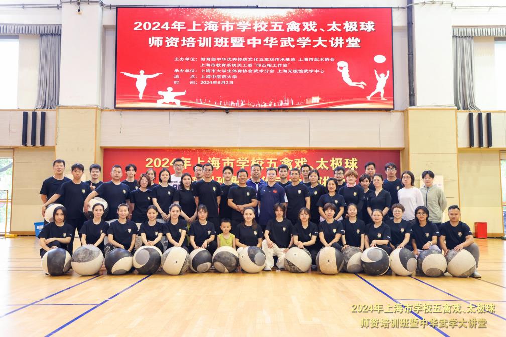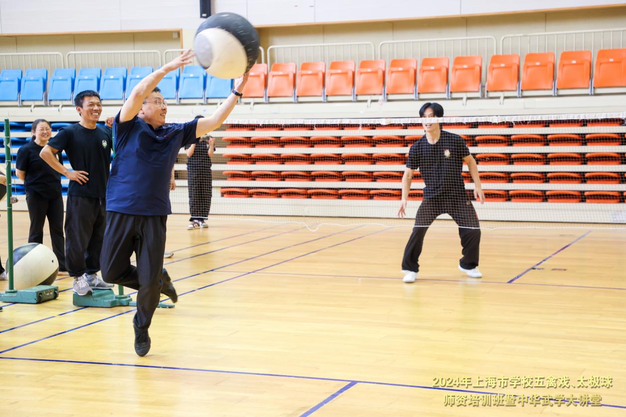 为促进中华优秀传统体育文化传承发展,深入推进中华优秀传统体育项目进校园,进一步提高学校武术教师理论及教学实践水平,6月2日,由教育部中华优秀传统文化五禽戏传承基地、上海市武术协会、上海市教育系统关工委“邱丕相工作室”主办,上海市大学生体育协会武术分会、上海无极馆武学中心承办的2024年上海市学校五禽戏、太极球师资培训班暨中华武学大讲堂在我校举办,来自沪上50家单位的70余名武术教师参加,同时也吸引了我校40余名热爱武术的大学生参会。
