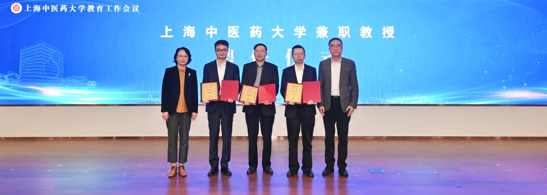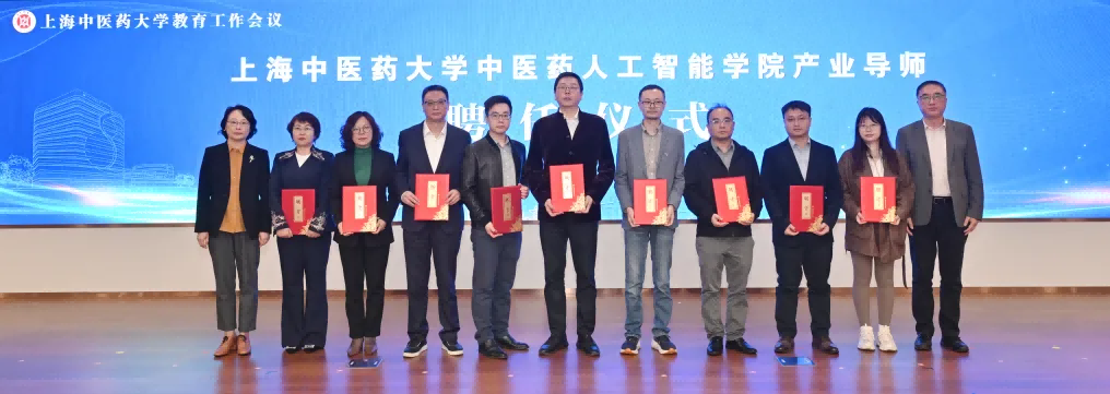 在学校兼职教授、产业导师聘任仪式上,校党委副书记沈辉,校党委副书记、副校长孟煜为复旦大学大数据学院特聘教授、上海市突出贡献专家协会副会长及人工智能专委会主任周曦民,中国电信股份有限公司上海分公司公共服务大客户部技术总监、教授级高级工程师于清,以及华为技术有限公司、华为云上海首席产品官、AI战略规划及洞察专家孟鑫颁发兼职教授聘书。并向国家医学攻关产教融合创新平台和学校中医药人工智能学院的产业导师颁发聘书。