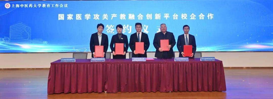 副校长王拥军代表学校与上海绿谷制药有限公司董事长吕松涛,上海凯宝药业股份有限公司董事长穆竟伟,苏州玉森新药开发有限公司董事长玄振玉,正大青春宝药业有限公司副总经理刘雳等,分别签订产教融合平台校企合作协议。