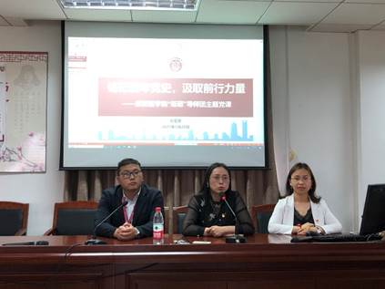 随后,学院办公室褚春晓老师以“传承红色基因,争做时代新人”的主题党课,红色基因是追求,是用于拼搏,自强不息,红色基因也是忘我工作,无私奉献,无怨无悔,作为新一代接班人,我们应该坚定从容,从小事做起,善始善终,善作善成,将红色基因传承下去。随后结合毕业临床实习,通过以往临床实习过程中发生过的案例,介绍了临床实习教学管理环节注意事项,希望在一年的实习中学有所获,争做时代新人。