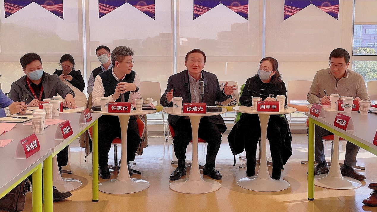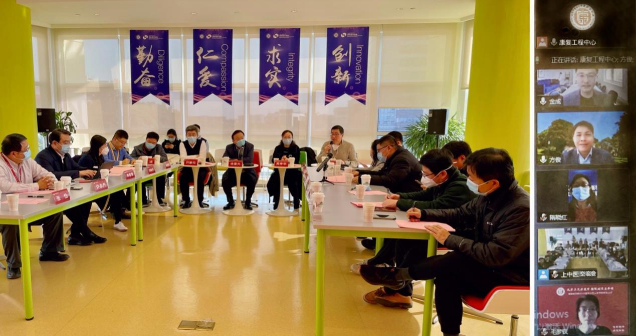 12月15日上午,中医智能康复教育部工程研究中心与上海交通大学生物医学工程学院交流会在我校国际交流合作中心顺利举行。上海市人大教科文卫委员会主任委员、中医智能康复教育部工程研究中心主任、上海中医药大学原校长徐建光与工程中心执行主任、康复医学院院长单春雷邀请上海交通大学生物医学工程学院党委副书记周申申,教授钱大宏,副教授王飞虎来访,书记陈江平及部分专家通过线上形式参与本次会议。有关职能处室负责人,康复医学院党政领导班子出席。会议由中心办公室主任、康复医学院副院长许东升主持。