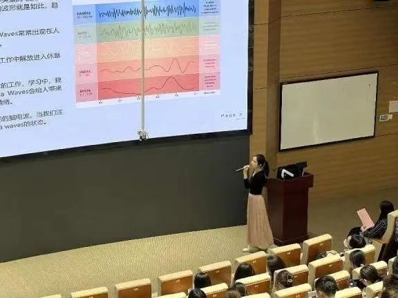 上海音乐学院舒于飞老师为师生作《多维声音体验下的音乐人工智能辅助康疗》主题讲座。她从所在团队2020年疫情期间参与设计的《现代冥想辅助医务人员抗疫专辑》(一、二、三、英文版)讲起,向师生娓娓道来帕金森患者音乐干涉、音视联觉与心流体验、生物电源与音乐生成、白噪音与心理压力疏导、ASMR与Alpha脑波等多个方面的前沿应用。舒于飞展示了现代康复医学结合脑神经外科、临床学、精神卫生学科、声音听觉心理学、声音设计与制作等多元学科的融合发展和研发,探索声音治疗、冥想音乐、音乐人工智能科研的最新成果。同学们也初步了解了通过交叉学科探索和多维声音体验,借助音乐与科技手段、人工智能技术,为来自社会各方面的多因素压力源群体、手术前后患者的减压和康复带来个性化以及量身定做的声音治疗方案的现实可能。
