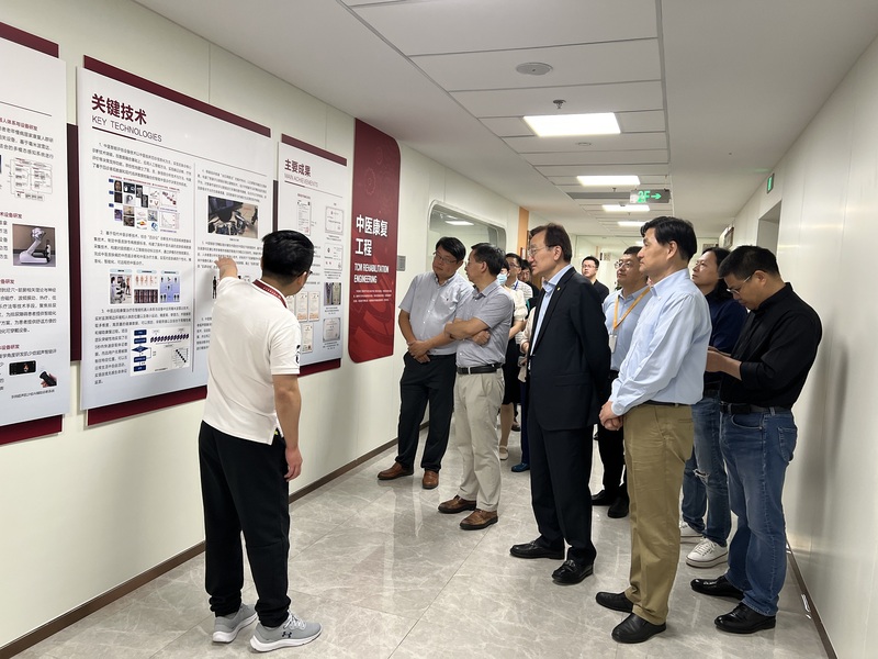 随后专家们对中医智能康复教育部工程研究中心进行现场考察,并提出意见和建议。