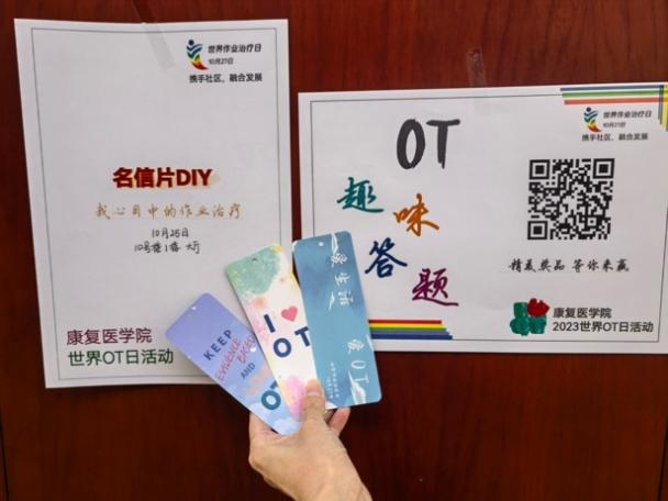 在进入社区服务社会的同时,康复医学院联合作业治疗教研室也在校园中组织了OT游园会,通过OT趣味答题、明信片DIY形式向在校学生普及作业治疗的概念和世界OT日。