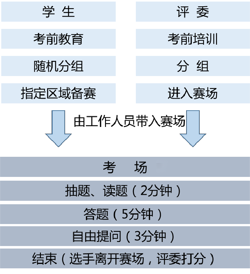 (2)技能比赛:参赛学生随机分组(PT:40人分为4个组;OT:7人1个组;ST:10人1个组)。技能比赛所需模拟病人来源于低年级学生志愿者。