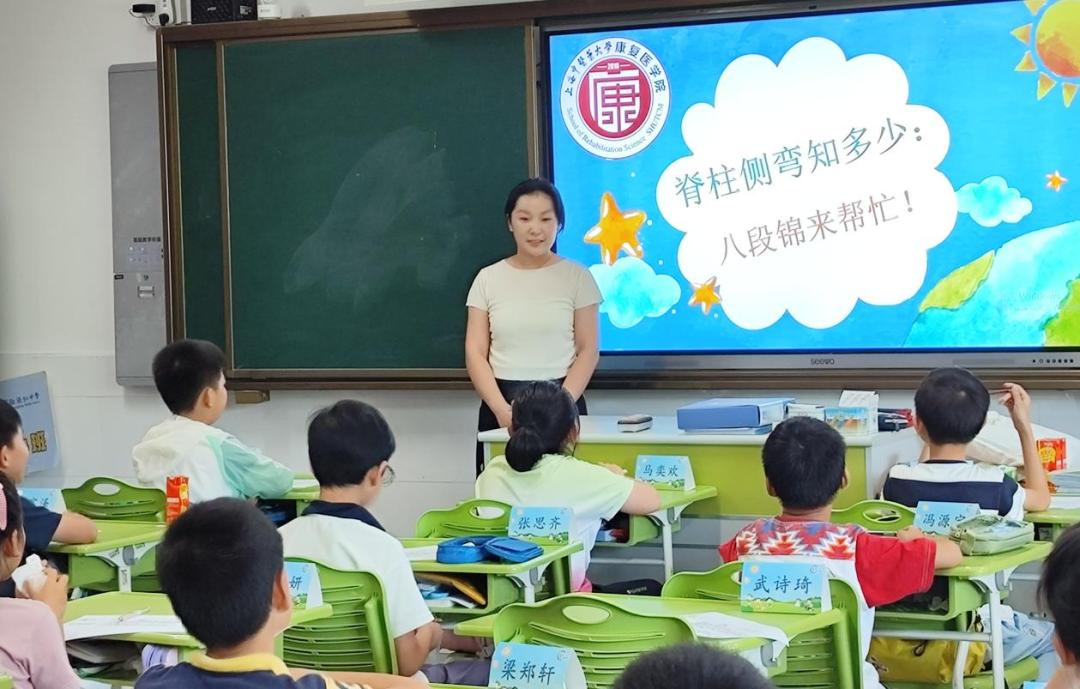 本次活动旨在通过科普八段锦对预防儿童脊柱侧弯的影响,在参加此次活动的小学生心中种下一颗中医药文化的种子。通过运动来预防疾病是康复医学一贯的理念,志愿者们运用所学知识,通过科普讲课和八段锦教学指导让小朋友们学习了脊柱和体态健康知识,同时在八段锦练习中也学会了通过传统健身功法来预防脊柱侧弯。未来,康复医学院的同学们依旧会不懈努力,为推广中医传统健身功法、提升全民健康水平贡献自己的力量。