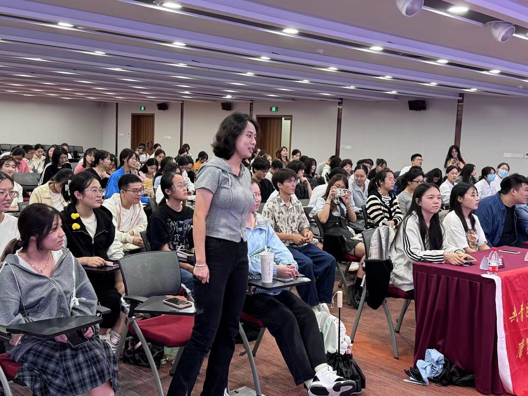 杨莹老师以“砥砺青春,不负韶华”为主题开展团课,通过与同学交流自身经历,引申出对于“团学骨干”的理解,提出优秀学生干部应该做到认真负责、公平公正、品学兼优、待人亲切,她提出,“团干部应当富有理想、对党忠诚、提升本领、具备服务意识与砥砺品质、认真学习。”
