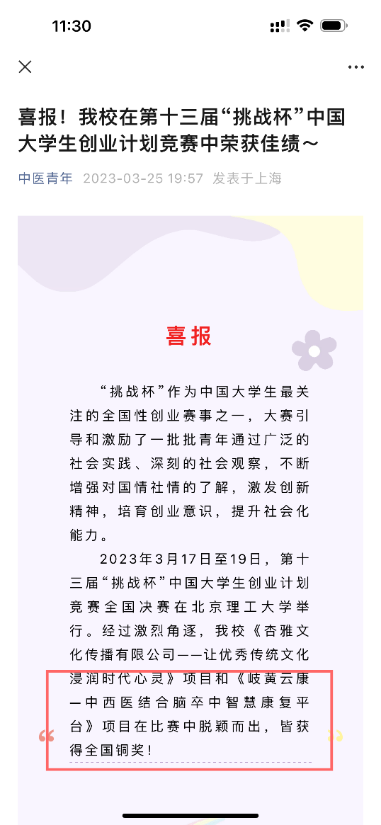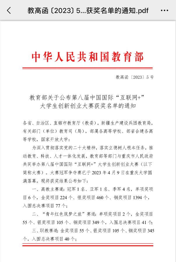 1.第十三届“挑战杯”中国大学生创业计划竞赛全国铜奖