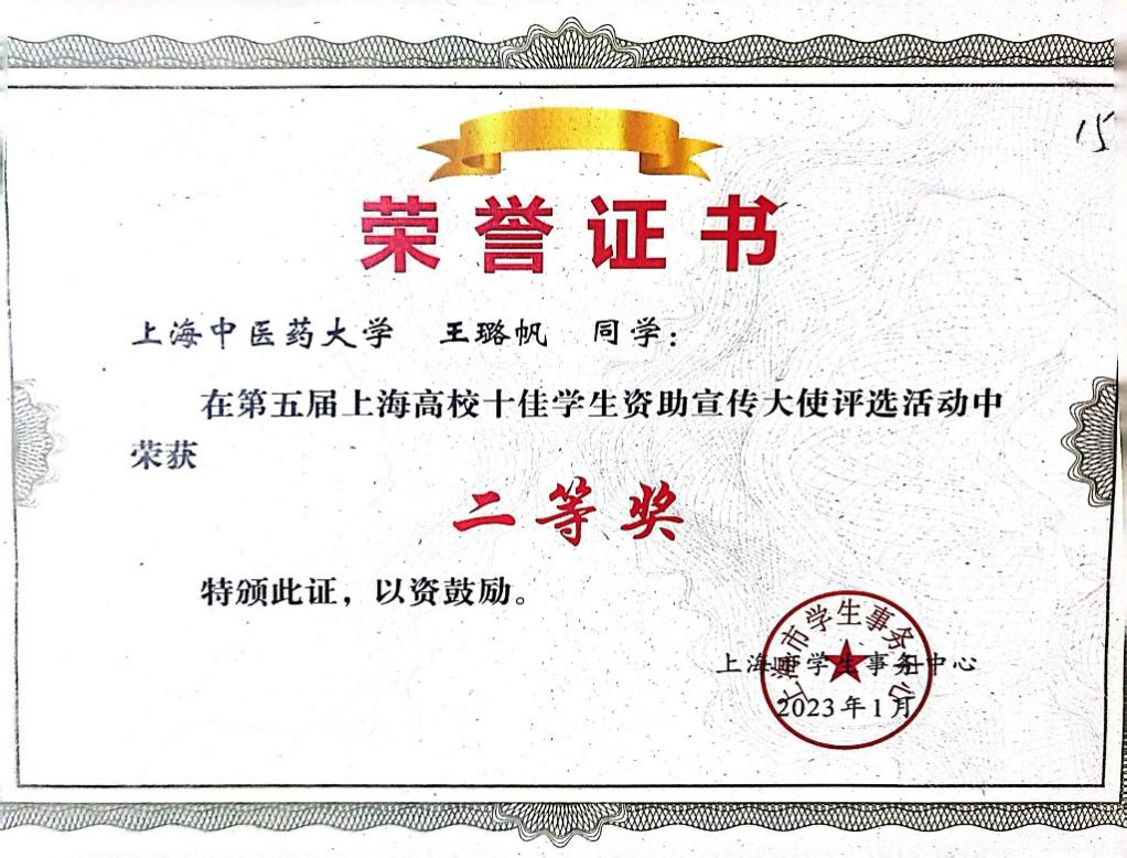 4.第五届上海高校十佳学生资助宣传大使二等奖