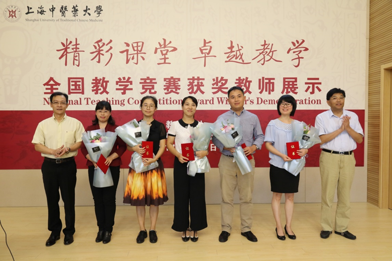 展示活动前,校党委书记曹锡康、副校长季光为竞赛一等奖获得者科技人文研究院李明,以及二等奖获得者科技人文研究院张亭立,龙华医学院曲环汝、魏华凤,岳阳医学院季亚婕颁证并表示热烈祝贺。