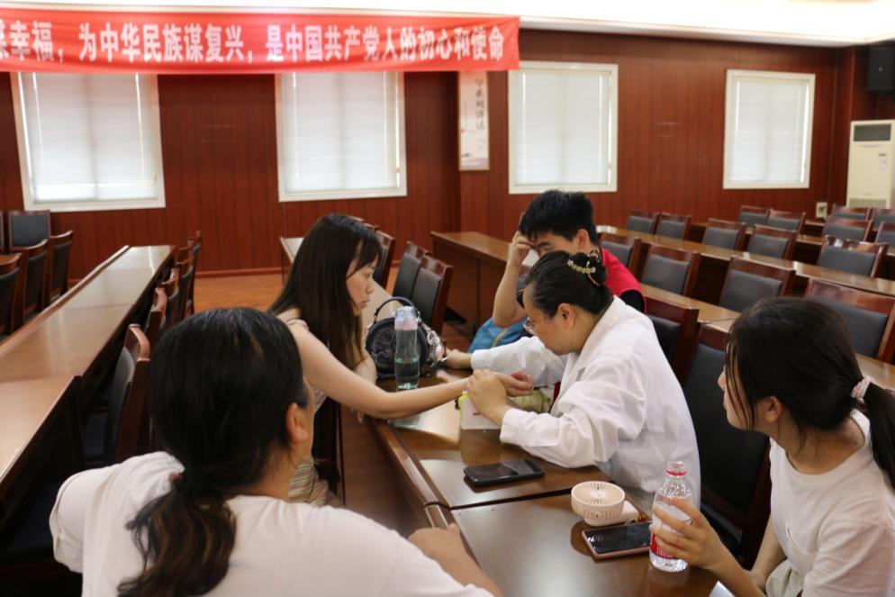 在台州黄岩乡村礼堂,师生们为黄岩村的村民开展了义诊咨询。望闻问切,四诊合参,运用传统中医诊疗方法为村民健康出谋划策,提高防病意识,让健康知识深入人心。