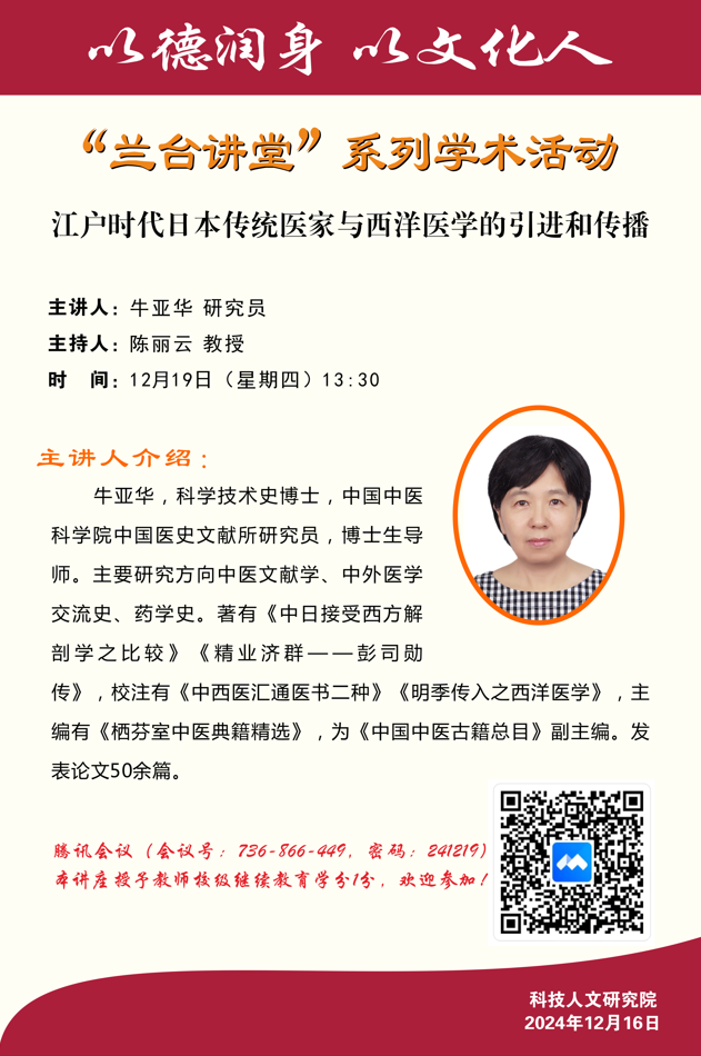 “兰台讲堂”系列学术活动——江户时代日本传统医家与西洋医学的引进和传播