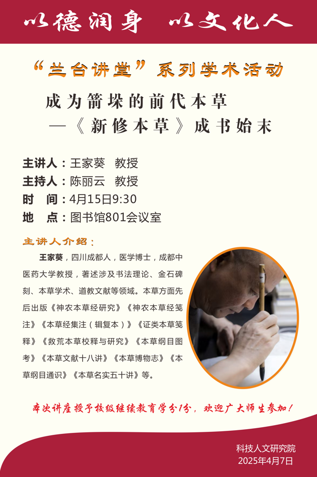 “兰台讲堂”系列学术活动——成为箭垛的前代本草-《新修本草》成书始末