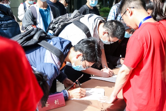 在本次院士论坛中,签到组的志愿者们主要负责来自不同高校师生、附属医院医务人员、媒体记者的签到工作。本次活动共500余人参会,一天两场会议要完成1000余次签到,学生志愿者们严谨认真,协调现场秩序,通过沟通和合作完成为期两天的签到任务。