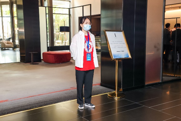 从酒店正门走入,接待组的志愿者们着红色棒球衫微笑迎接,为嘉宾指引带路。得体的言行,让嘉宾们感受到我校学子的精气神和青春活力。每穿过一道回廊,路过一个拐角,就能看到志愿者们的挺拔身姿、微笑服务。
