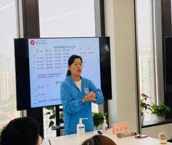 护理第四党支部的青年党员程鑫为参加讲座的人员讲解手卫生知识,并现场演示“七步洗手法”,帮助掌握正确的洗手方法,认识到规范洗手的重要性。