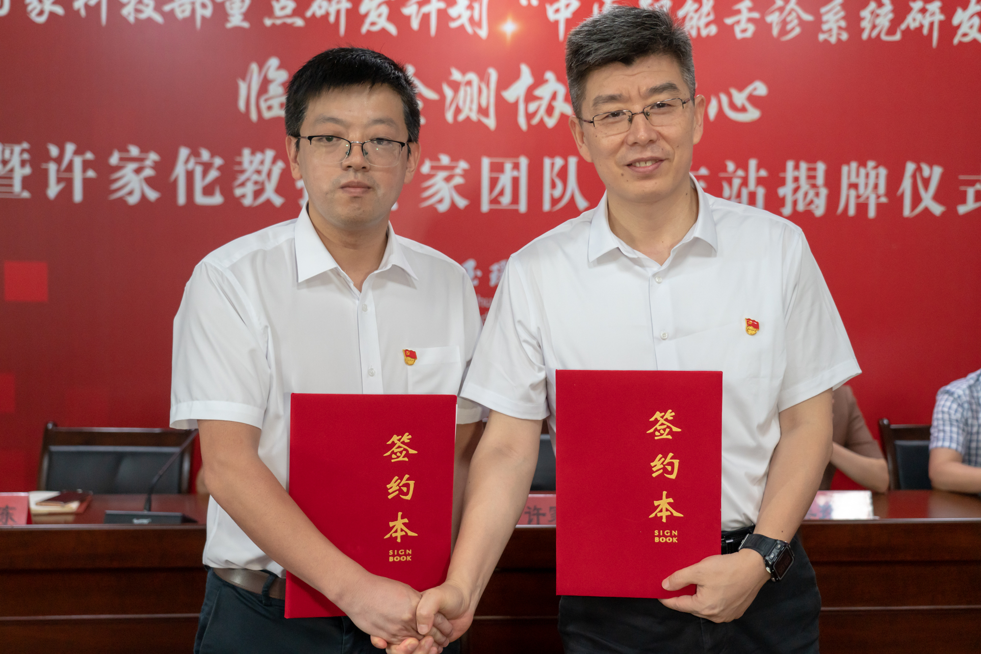 上海中医药大学基础医学院与玉环市中医院合作共建、国家科技部重点研发计划“中医智能舌诊系统研发”临床检测协作中心暨许家佗教授专家团队工作站揭牌仪式举行。玉环市政协副主席吴玲芝,玉环市卫生健康局党工委书记、局长王必胜,玉环市中医院党政班子成员等参加揭牌仪式。仪式由玉环市中医院党委书记杨良宝主持,王必胜致欢迎辞,许家佗发言。