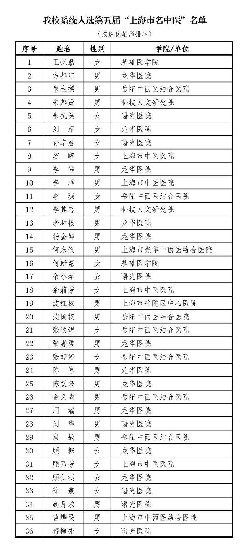 第五届“上海市名中医”评选揭晓,我校系统36位专家获此殊荣