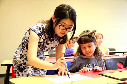 为了筹办这次的文化夏令营,交流团的成员在出发前精心准备了五彩缤纷的手工艺品、小巧精致的故事漫画、中国特色的武术表演和惟妙惟肖的幻灯制片等。夏令营期间,同学们向美国小朋友传授了太极拳,化繁就简,寓教于乐,将太极招式中的动作描述成“push the candy”—推糖果、“pat the dog”--抚摸小狗,让美国小朋友在轻松愉快的氛围中感受中医文化的神奇魅力。交流团还向他们传授了跌宕遒丽的中国书法、细腻生动的剪纸工艺以及精美的龙头面具制作技术。