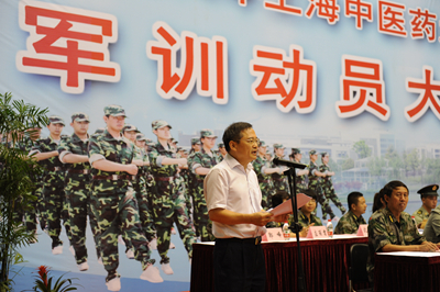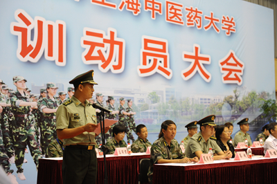 9月3日上午,上海中医药大学2014年军训动员大会在校体育馆隆重举行。校党委书记张智强,党委副书记何星海,党委副书记、军训团政委朱惠蓉,副校长张瑾、季光,军训团团长黄勇军,学校相关职能部门和二级学院学生工作负责人、军训教官、辅导员及2014级全体新生等参加了本次大会。动员大会由朱惠蓉主持。