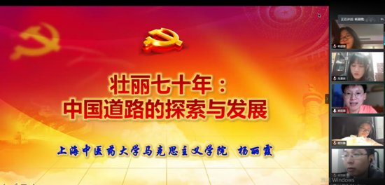 党的十八大以来,以习近平同志为核心的党中央更加注重从党和国家的历史宝库中汲取治国理政的经验和智慧,强调“学习党史、国史是坚持和发展中国特色社会主义、把党和国家各项事业继续推向前进的必修课”。为不断夯实“四史”理论基础知识学习,进一步加深全体党员学史爱党、知史爱国、明史担责的历史使命感和责任感。6月8日,中药学院研究生党总支共聚线上,邀请马克思主义学院杨丽霞副教授,由她带来《壮丽七十年:中国道路的探索与发展》主题讲座,深入学习四史,感悟何为大国担当,激发党员坚定自信、把握规律,让初心薪火相传,把使命勇担在肩。
