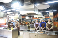 在干旦峰老师的带领下,同学们将食材混合、经过反复揉搓、摔打成光滑且柔软的面团,将其送往烘焙室发酵。