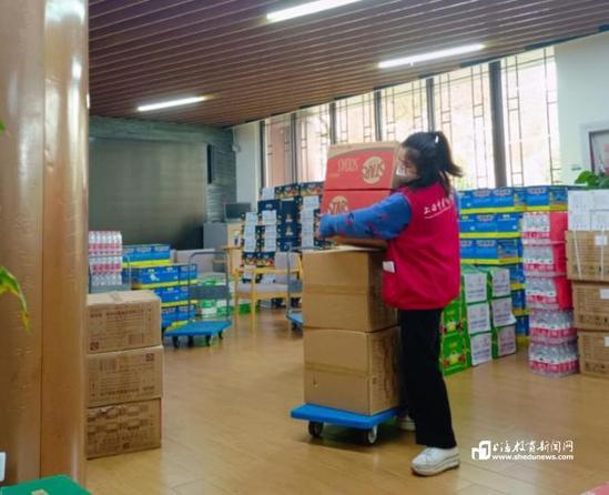 针灸推拿学院的黄玉钊作为一名入党积极分子担任了负责搬运物资的志愿者,她说:“在递交入党申请书的那一刻,我便坚定我的选择,一定要在祖国和人民最需要的地方绽放出一片‘志愿红’。”