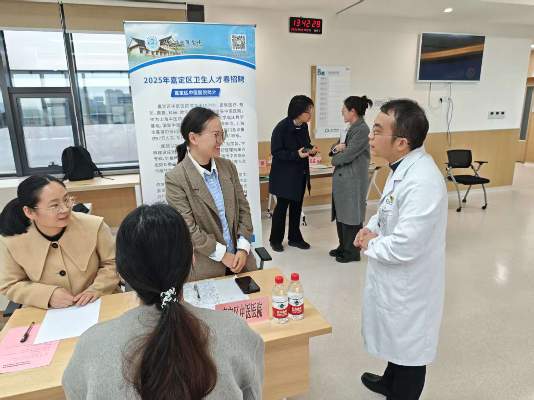 2025年3月28日下午,上海中医药大学市中医临床医学院2025届毕业生春季招聘会在上海市中医医院嘉定院区圆满举行。出席本次招聘会的有上海中医药大学学生工作部部长沈漫,上海市中医医院副院长(主持工作)尹磊淼、党委副书记张雯静及医院多位职能部门负责人,同时还有来自嘉定区中医医院等多家市中医医联体单位等招聘单位的代表及市中医临床医学院培养的应届硕士、博士毕业生。此次招聘会不仅是一次人才与机遇的邂逅,更是上海中医药大学附属医院培养的优秀学生向各医联体单位展示才华、寻求发展的舞台。