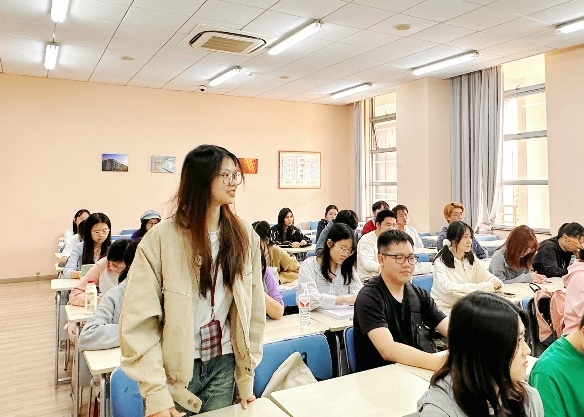 李倩老师首先对两个班级的总体学习情况进行深入分析,引导同学们思考在大学期间应该如何掌握正确的学习方法,提高学习效率,同时着重强调了考试诚信和学术诚信的重要性,临近期末考试要严格遵守考场的各项规定,使用AI技术要遵守学术规范。在推进班级建设和学风建设的过程中,班级成员都应当培养和树立起强烈的集体荣誉感,每位同学都肩负着维护班级风气、遵守班级纪律的重要责任。