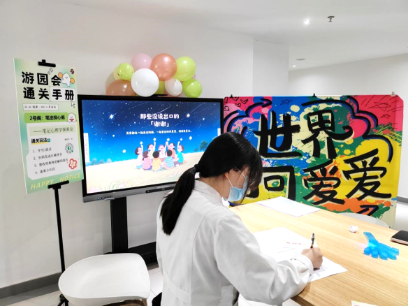 “爱自己,原来可以从一场游园开始”,将心理与AI结合,用科技传递温度,这场“心灵之旅”虽然进入尾声,但当严肃的医学与温暖的人文相遇,“525我爱我”在同学的心里变得具象,正念冥想、人际互动、专注力小游戏、涂鸦画作纷纷成为同学们未来在学习与工作之余,最想实践和运用的内容。
