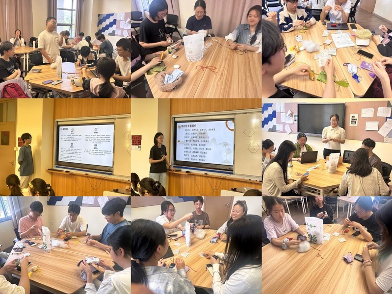 在2023级中医学(屠呦呦班)班会现场,同学们在轻松愉快的氛围中围坐一堂,朱靓贤老师根据“中医五行”向学生们详细讲述端午佩香囊的民俗渊源,并展示艾叶、广藿香、白芷、石菖蒲、金银花等药材,同学们根据方剂学课程所学进行现场配伍,在青年班主任和辅导员的精心指导下,依照自己的想法和喜好在无纺布过滤袋中添加香料,一件件造型别致、香气清雅的香囊逐渐成型。同学们不仅体验了手工创作的乐趣,更在交流协作中舒缓压力,收获成就感。2023级中医学(屠呦呦班)李泽卿表示:“缝补过程很治愈,看着自己配伍并亲手制作的香囊成就感满满,此次活动不仅是将学习用于实践,更是一场放松心情、舒缓压力的好方法。”