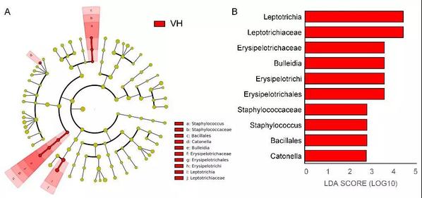 通过LEfSe分析我们发现,Leptotrichia, Staphylococcus, Catonella, and Bulleidia等潜在致病菌的丰度在极高血糖组中显著升高。