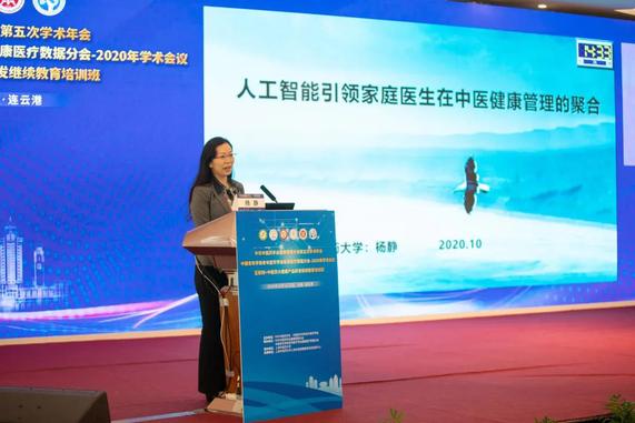 成都中医药大学副校长、全国中医药高教学会临床教育研究会第十届理事会副理事长杨静介绍了人工智能和家庭医生在中医健康管理的角色和作用。