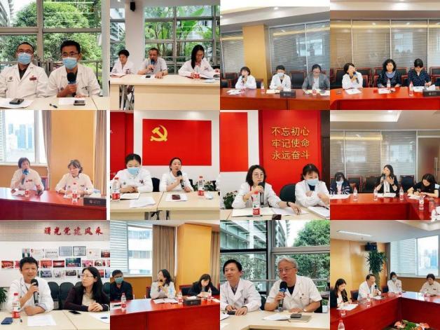与会党支部书记和部分支部代表们围绕调研提纲、结合党支部换届后实际工作的情况进行交流讨论,提出在主题教育的理论学习、党建特色品牌创建和深化、党建与业务工作有机融合、打造支部特色、服务患者和百姓等内容上的下一步工作计划和具体措施,并就党务干部专业能力培养、党课宣讲能力提升、特色品牌的打造、样板党支部的建设经验、院内党支部联动等方面提出培训、学习和交流的需求。