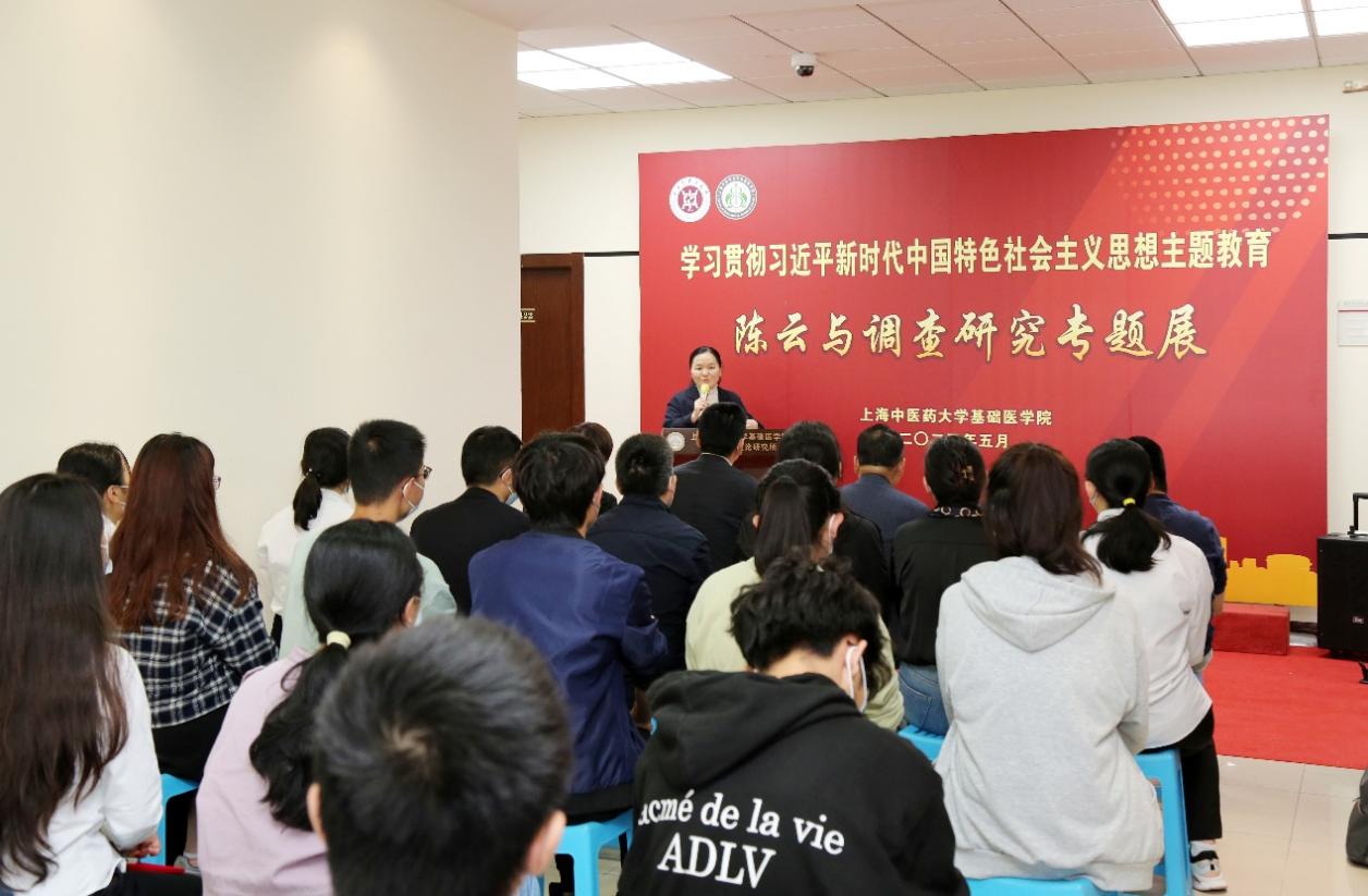为推动主题教育走深走实,积极落实关于在全党大兴调查研究的方案要求,让师生进一步增强调查研究的主动性、自觉性和科学性,5月22日下午,基础医学院与陈云纪念馆再度合作,将《陈云与调查研究》专题展送到师生“家门口”,在8号教学楼四楼布展并举行专题展启动仪式,为学校主题教育再添一处现场教学点。