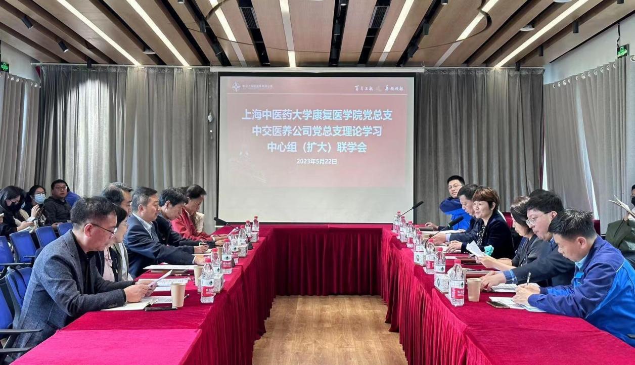 为深入学习贯彻习近平新时代中国特色社会主义思想,全面贯彻党的二十大精神,落实校党委相关工作要求,推进康复医学院“杏林”党建远志计划,5月22日,我校康复医学院党总支与中交医养公司党总支在吴房村会议中心举行理论学习中心组(扩大)联学会。我校康复医学院党总支书记向延卫、院长单春雷、副院长刘晓丹、体育部党总支书记龚博敏,浦东卫校党支部书记方一,中交医养公司领导王志远、李小青、梁瑞芬、姚忠明、王玮、杨铭出席。上海交建公司上海南部片区项目总部常务副经理曹峥、项目总部党支部书记陈勤国,中交医养公司各部门负责人及上海中医药大学康复医学院师生代表参加会议。会议由中交医养公司党总支书记李小青主持。