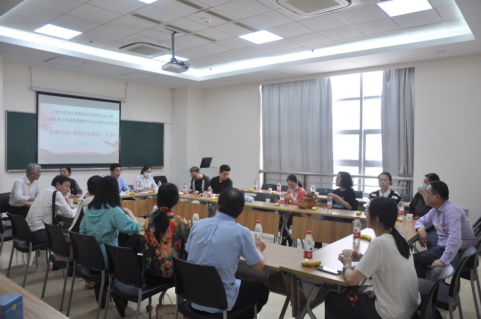 在交流座谈中,双方支部书记邵水金和罗萍分别介绍了支部基本情况。我校基础医学院教授张黎声围绕如何将马克思主义基本立场、观点和方法融入到解剖学课程教学之中,做到“同向同行”,实现教学的思想性、科学性和先进性进行经验交流。上海交通大学医学院解剖学与生理学系支部党员、少数民族骨干教师木合依提 · 阿地力艾力以“28岁的追梦人——以青春筑梦,用行动育人”为题进行交流发言。