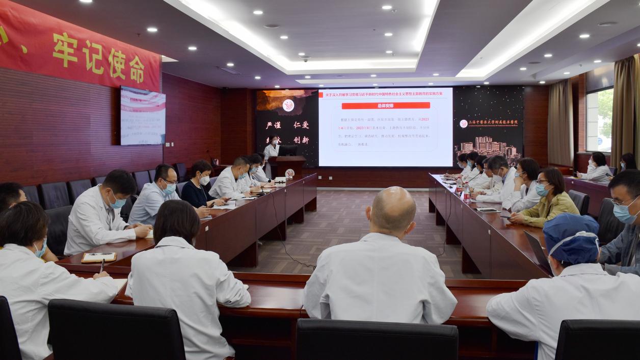 会上,首先传达上海中医药大学党委主题教育实施方案精神,强调此次主题教育总要求是“学思想、强党性、重实践、建新功”。深入开展学习贯彻习近平新时代中国特色社会主义思想主题教育,是党中央作出的重大决策,是贯彻落实党的二十大精神的重大举措。全院干部职工要积极贯彻落实各项要求,推动主题教育走深走实,以党的创新理论滋养初心、引领使命,奋力创造新时代新成就、展现医院高质量发展新气象,让党的思想在医院建设中化为更为绚丽的生动图景。