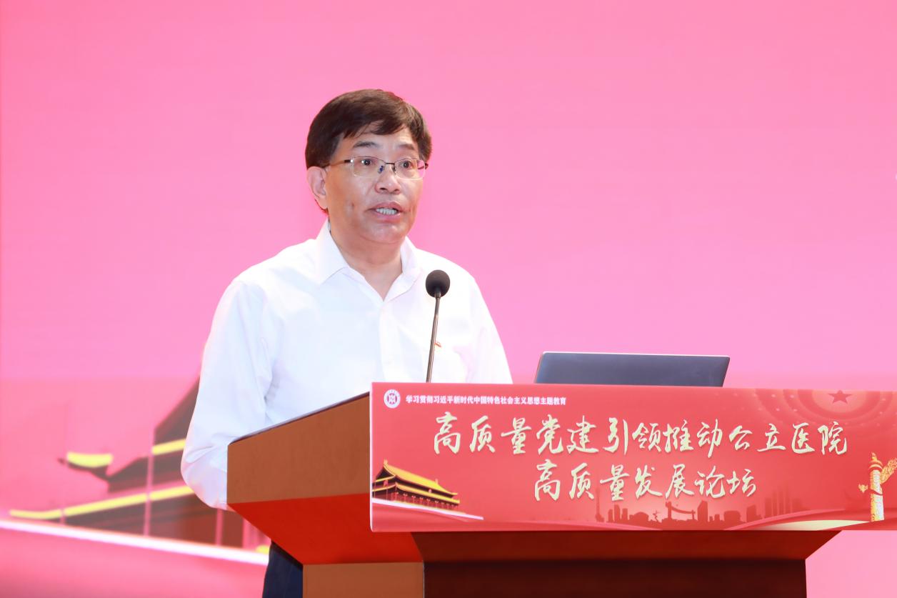 方秉华作“加强党的领导,引领推动医院高质量发展”主旨报告,他指出,加强公立医院党的建设,首先要加强党的领导。公立医院要坚持创新的核心地位,提升技术创新能力,激发人才创新活力,完善创新体制机制,以创新为动力推进学科结构升级、重塑医院发展新优势,拓展新的发展空间。要积极推进协调发展,优先发展基础性、支撑性学科;聚焦短板、弱项,提高技术整体水平;聚焦优势、强项,承接转化溢出效应;加快数字化转型,提升核心竞争力。还要建立健全推动高质量发展的指标体系,着力提高医务人员收入水平,繁荣发展健康文化,并进一步发挥基层党支部战斗堡垒作用。面向新时代新征程,他希望广大医务工作者们,继续秉承崇高职业精神,弘扬伟大抗疫精神,坚持高质量发展理念,为全面建设社会主义现代化国家、全面推进中华民族伟大复兴而团结奋斗!
