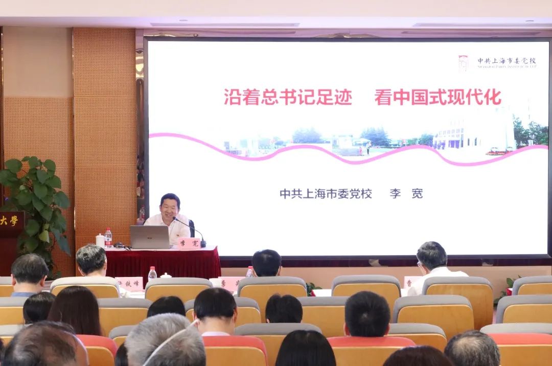 李宽介绍了“现代化”的发轫与变迁,并讲解中国自近代以来走上现代化道路的历史进程。他围绕习近平总书记考察上海重要讲话精神,深入阐述中国式现代化是中国共产党领导的社会主义现代化,是人口规模巨大的现代化、全体人民共同富裕的现代化、物质文明和精神文明相协调的现代化、人与自然和谐共生的现代化、走和平发展道路的现代化。