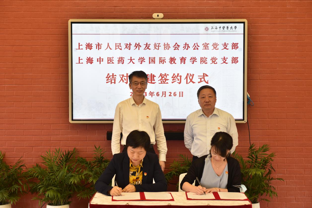 市人民对外友好协会办公室党支部书记徐洁与成琳代表双方签署党组织结对共建协议。两个党支部的“联学共建”,进一步发挥党支部战斗堡垒作用,对共同提升党建工作水平、立体式讲好中国故事,具有积极意义和推动作用。(国际教育学院)