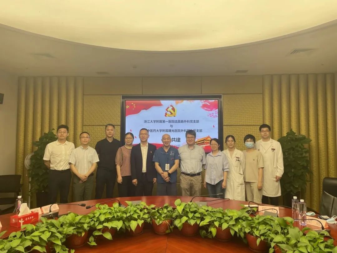 为充分发挥党建引领,整合各项资源,凝聚多方力量,在结直肠疾病健康医疗工作中促进长三角一体化建设,着力构建党建联建新格局,近日曙光医院外科第十党支部与浙江大学附属第一医院结直肠外科党支部举行党建共建签约仪式,曙光医院外科第十党支部书记柳国斌、肛肠科主任郑德,浙江大学医学院附属第一医院结直肠外科党支部书记刘凡隆及党员代表参加了此次共建活动。